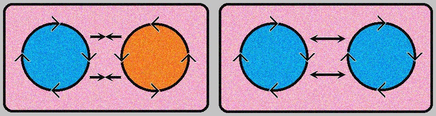 Los movimientos desconfigurados de los SDR de las partículas proyectan sus rozamientos y sus radiaciones en todas las direcciones, pero solo pueden recuperar su configuración desacelerando movimientos contiguos de superior velocidad. Donde los movimientos son excesivamente lentos, no pueden actuar y salen rebotados en otras direcciones. En un sistema contenedor, dependiendo de la densidad de partículas que posea, la recuperación de la configuración perdida, se ralentiza por la dificultad que tienen los rozamientos y las radiaciones para encontrar velocidades superiores sobre las que actuar. En base a estos hechos se entiende el efecto conocido como “Equilibrio Térmico” cuya descripción, como sabemos, es complicada, pero que se basa en el reparto homogéneo de la temperatura. La progresiva desaceleración de movimientos de los considerados ligeros, produce una saturación progresiva de ondas electromagnéticas que con cierta dificultad logran alcanzar movimientos ligeros no desacelerados.
