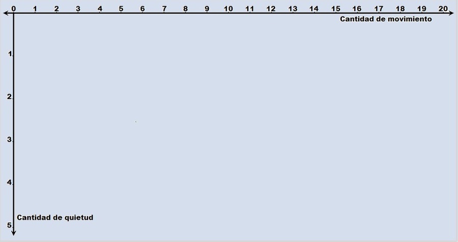 La quietud es, por tanto, un ingrediente que se mezcla con el movimiento en distintas cantidades generando las diferencias materiales sobre el fondo plano de la homogeneidad del movimiento universal, y lo hace estableciendo su velocidad en función de la proporción entre la cantidad de movimiento y la cantidad de quietud.